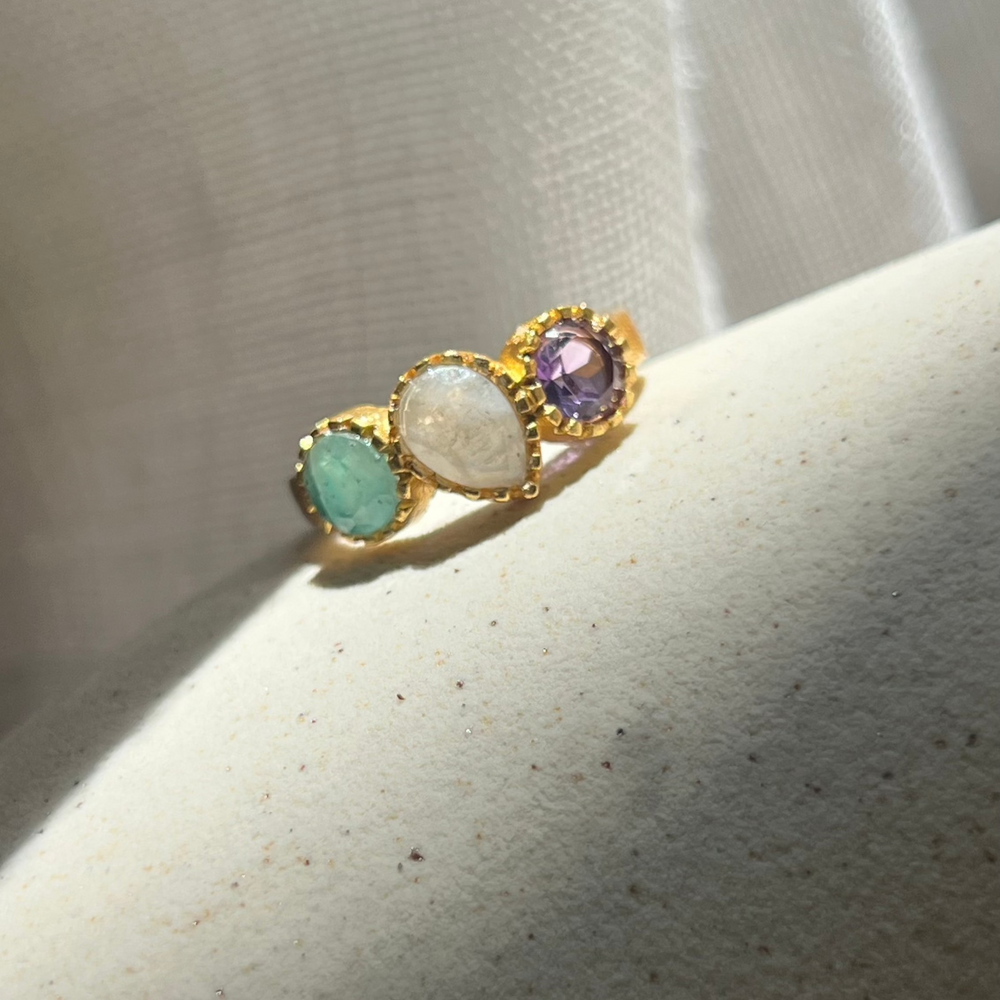 Nuestras piedras semipreciosas son seleccionadas con esmero, destacando sus colores y cualidades únicas. Desde las profundas tonalidades de las amatistas hasta la suavidad de las piedras lunares, cada una agrega un toque especial y una vibración única a tu anillo. Cada piedra es una obra de la naturaleza que llevas contigo, aportando belleza y significado a tu vida.